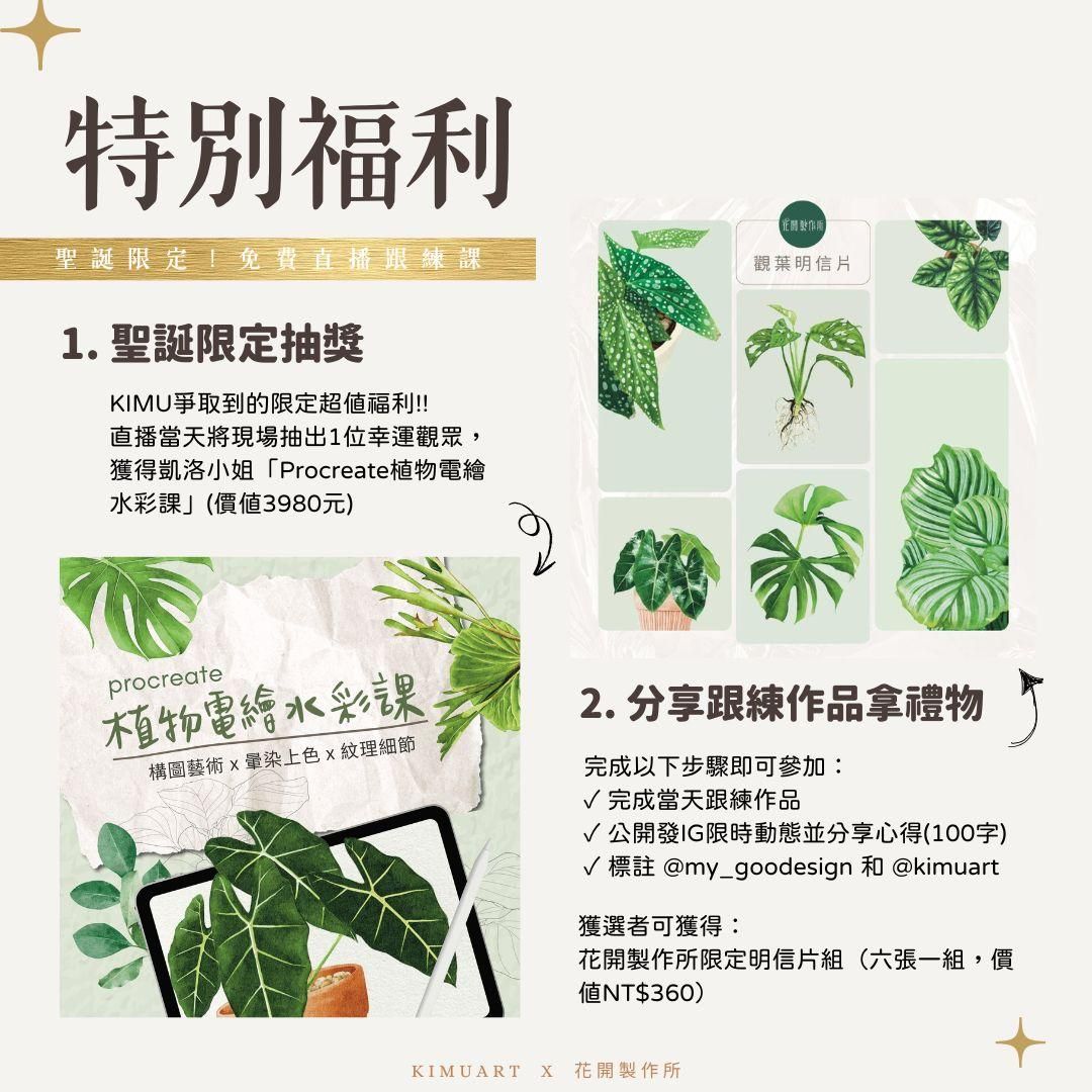 - 獲得凱洛小姐「procreate植物電繪水彩課」(價值3980元)