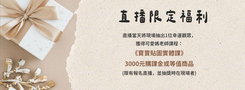 直播當天將現場抽出1位幸運觀眾,獲得可愛媽老師課程: