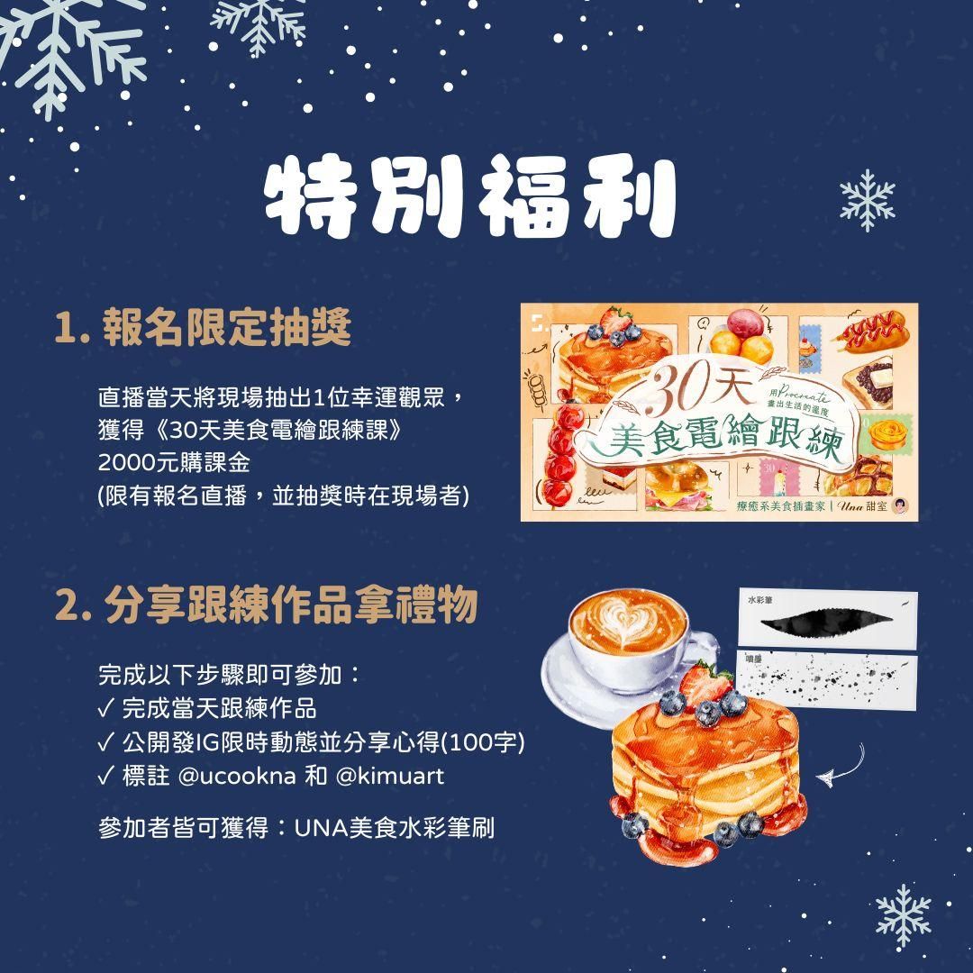 - 獨享《30天美食電繪跟練課》2000元購課金